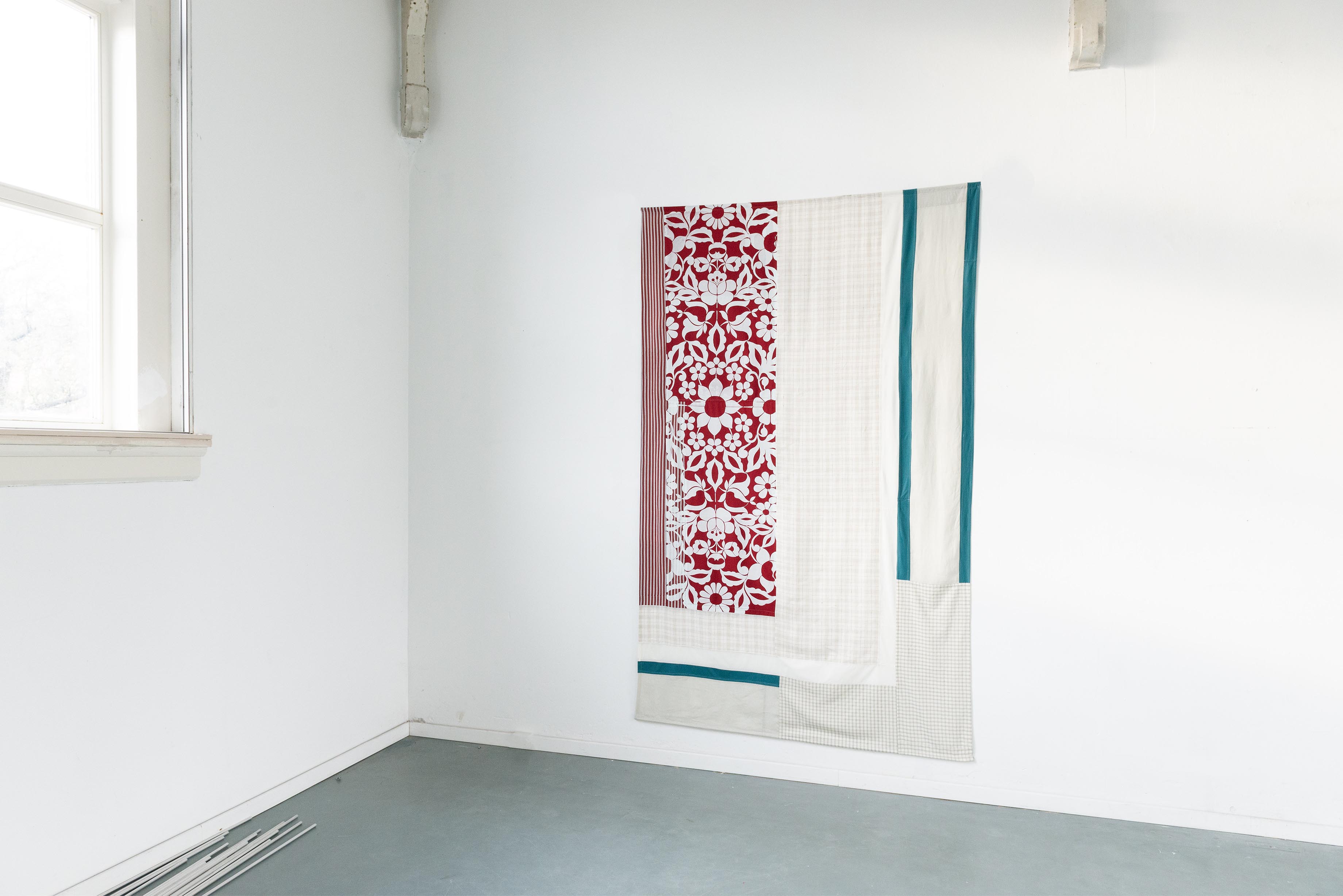 For her solo exhibition at the Grafische Werkplaats, Ariane Toussaint presents the various screen printing experiments on textile that she has been conducting at the workshop in the past months, including an artist’s book made of fabric and several textile patchworks. She creates site-specific textile installations that explore shifts in light and colour, using patchwork techniques as a metaphor for mending and building narratives.