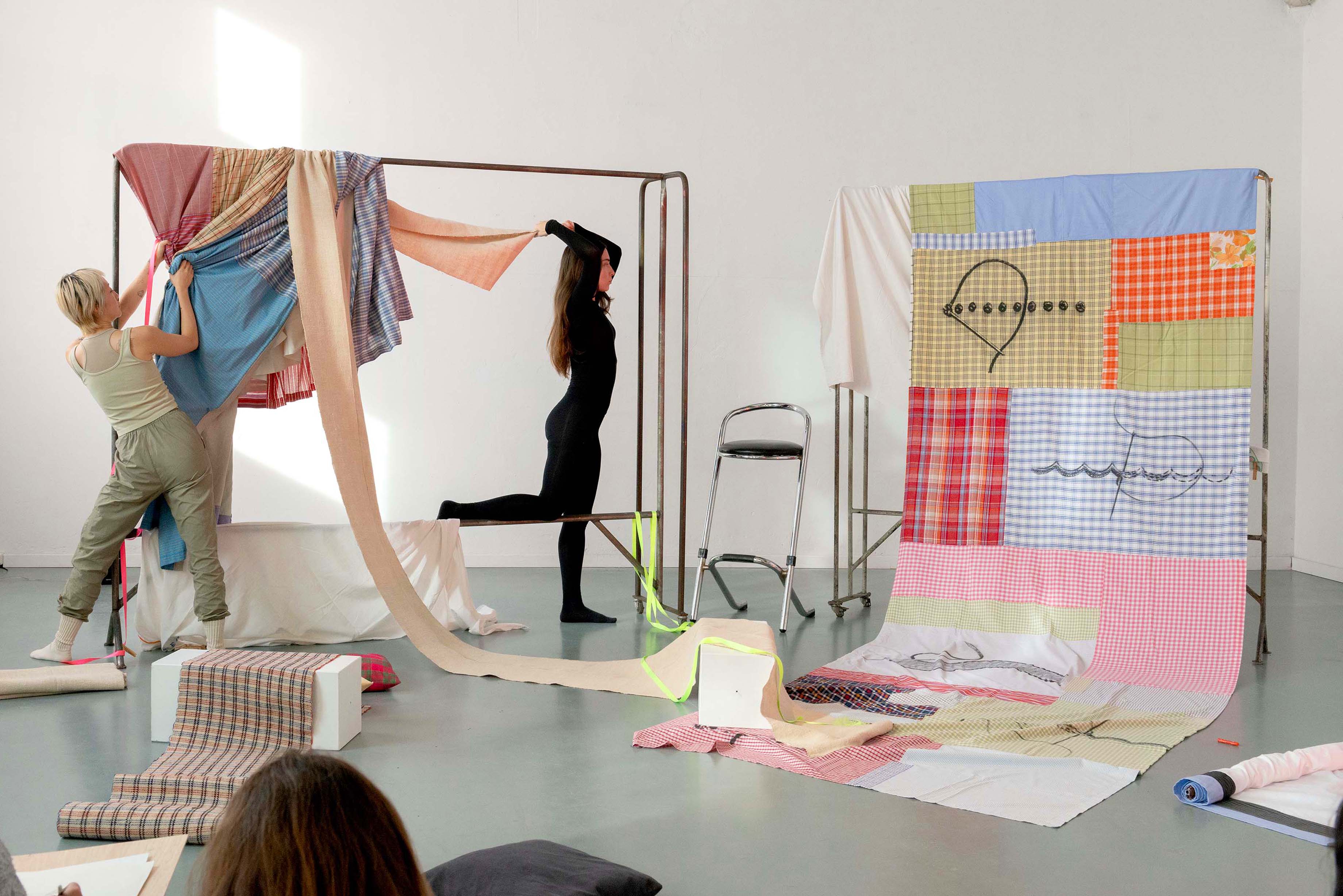 On the basis of observations of matriarchs and women in her own family, the artist develops a research on what (supposedly) links women to domestic spaces and care, questions the role of fabric in our human need for warmth and intimacy, and the place of domestic practices and textile crafts in contemporary art.